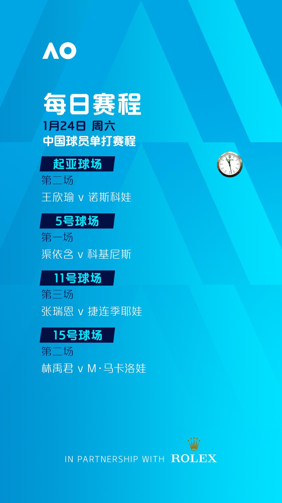 澳网第7比赛日赛程:王欣瑜冲击16强 德约科维奇领衔登场