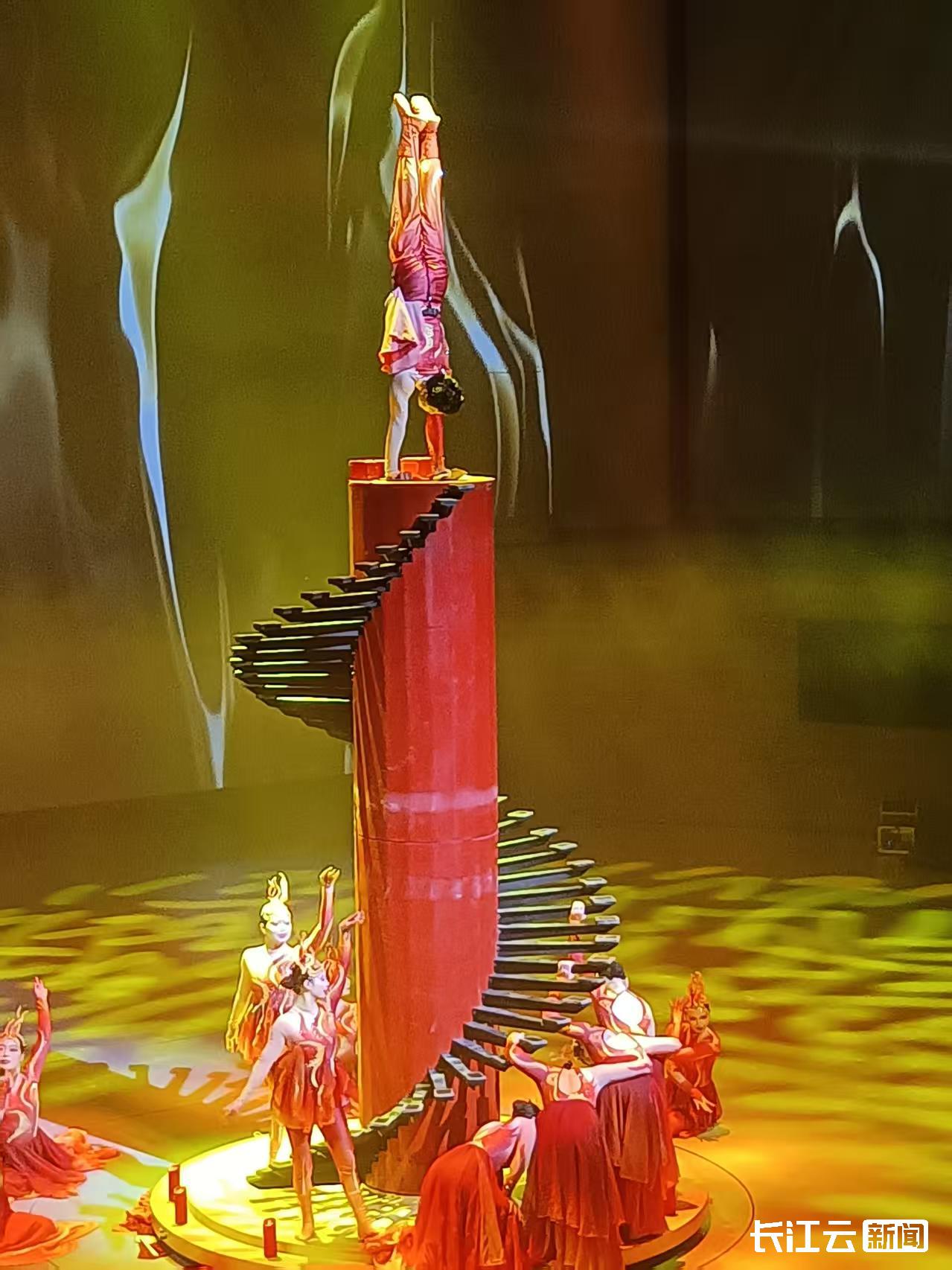 演出在黄冈市(浠水)杂技团气势恢宏的《舞狮》中拉开序幕。演员们在高桩之上腾挪跳跃,将雄狮的威武与灵动展现得淋漓尽致,瞬间点燃全场气氛。随后,山东聊城市杂技团的《俑·顶碗》以文物陶俑为灵感,用高超的顶技让沉睡千年的历史形象“活”了起来,实现了古老文化与现代杂技的巧妙对话。