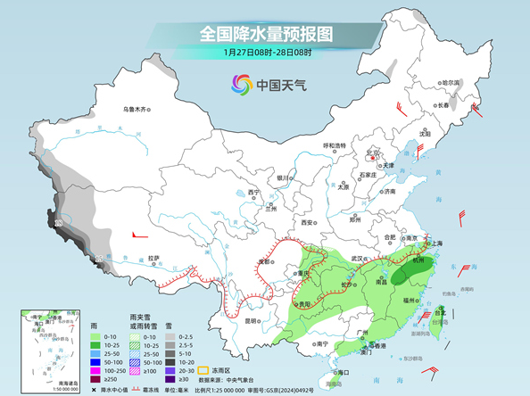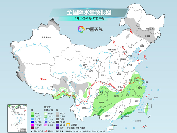 在这两股冷空气的影响下,今起至下周,我国雨雪天气发展增多,其中25日至27日,华北、东北地区南部、黄淮北部等地将有小到中雪,河南南部、湖北北部等局地有冻雨。