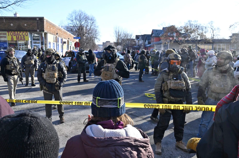 △当地时间24日,明尼阿波利斯市,联邦执法人员封锁了枪击现场