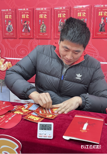 谢先生、孙先生、夏先生三位参与者率先体验了这一新奇挑战。现场购买了湖北福彩丙午马年年票收藏册的夏先生夫妇参与挑战。游戏全程夏先生乐得合不拢嘴,“希望借着收藏册的祝福把一年的幸运延续下去。”