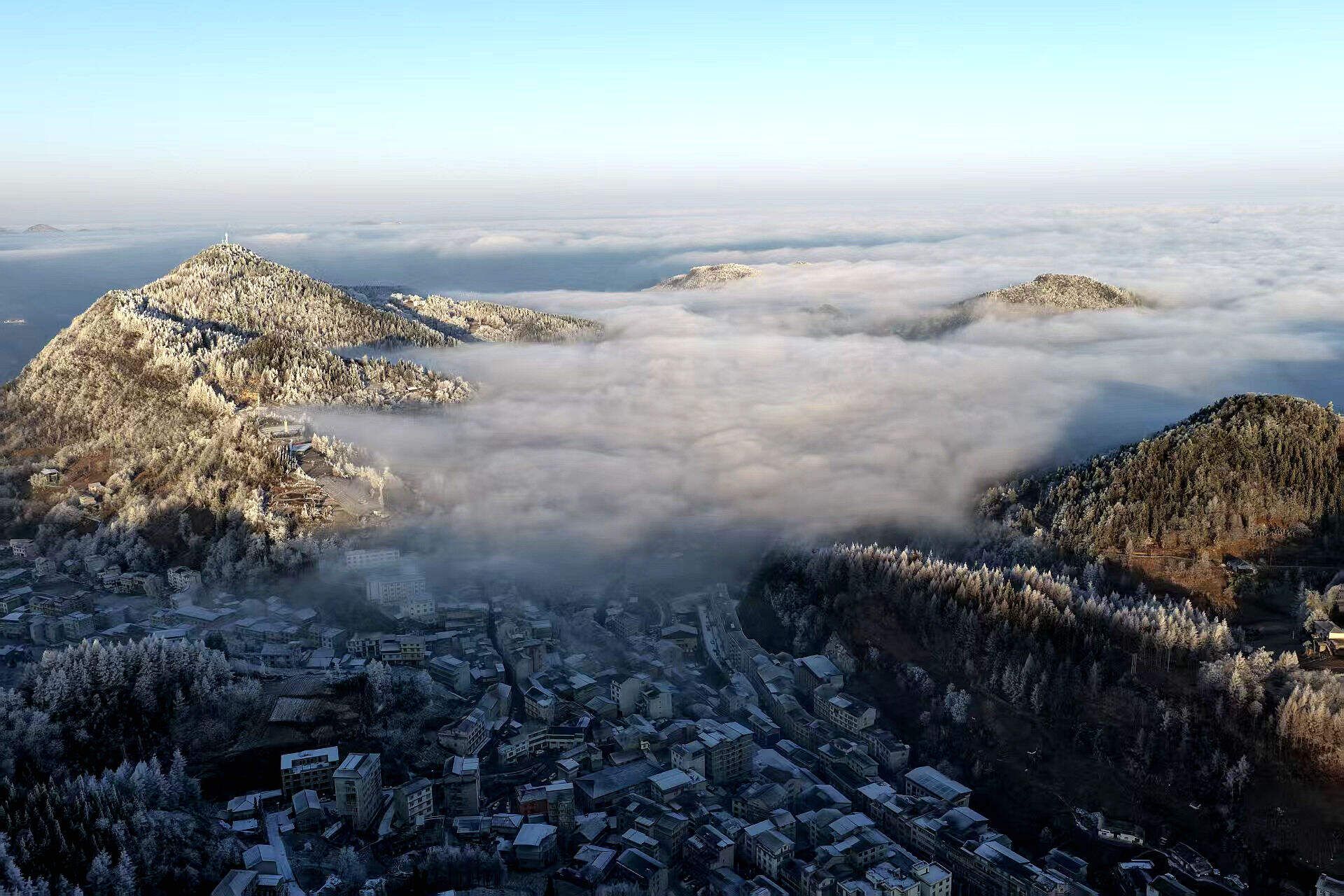 恩施建始:银装素裹映晨光 云海漫卷绘仙境