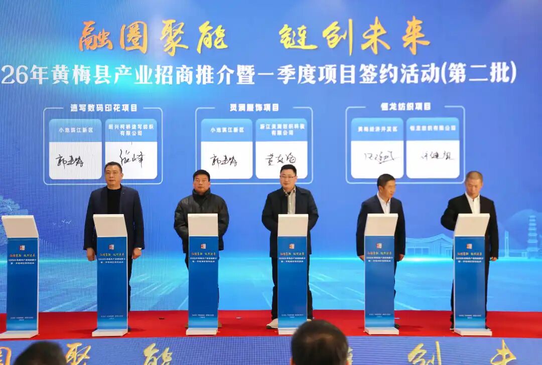 纺织服装领域,速写数码印花、灵润服饰等项目集中签约,将进一步完善从印花、成衣到品牌运营的全产业链条,助力黄梅打造区域性纺织印染中心;