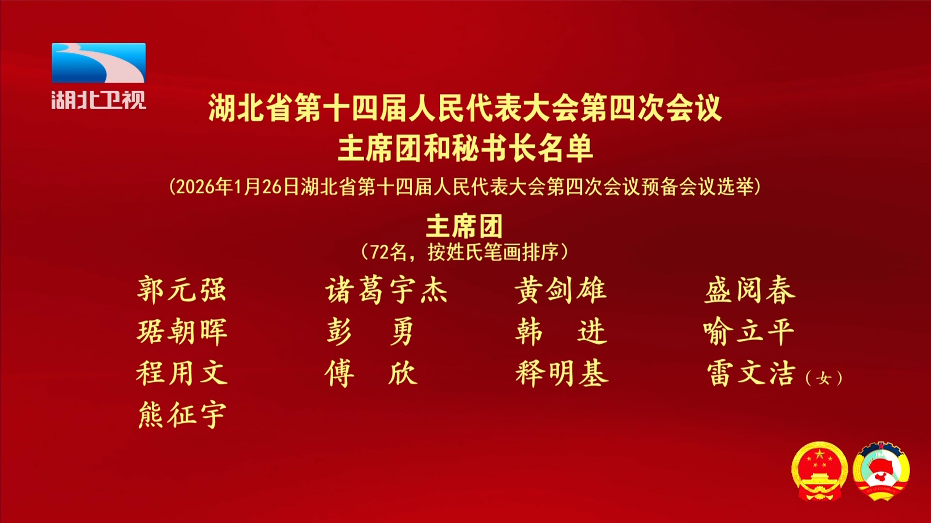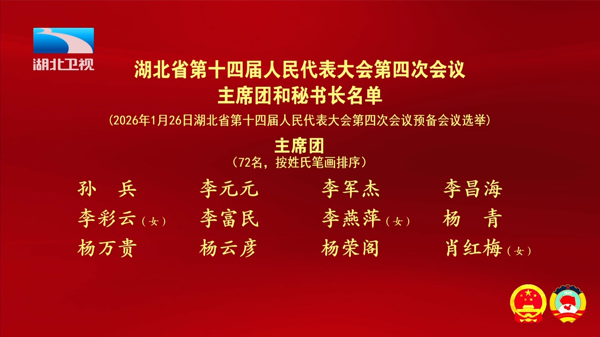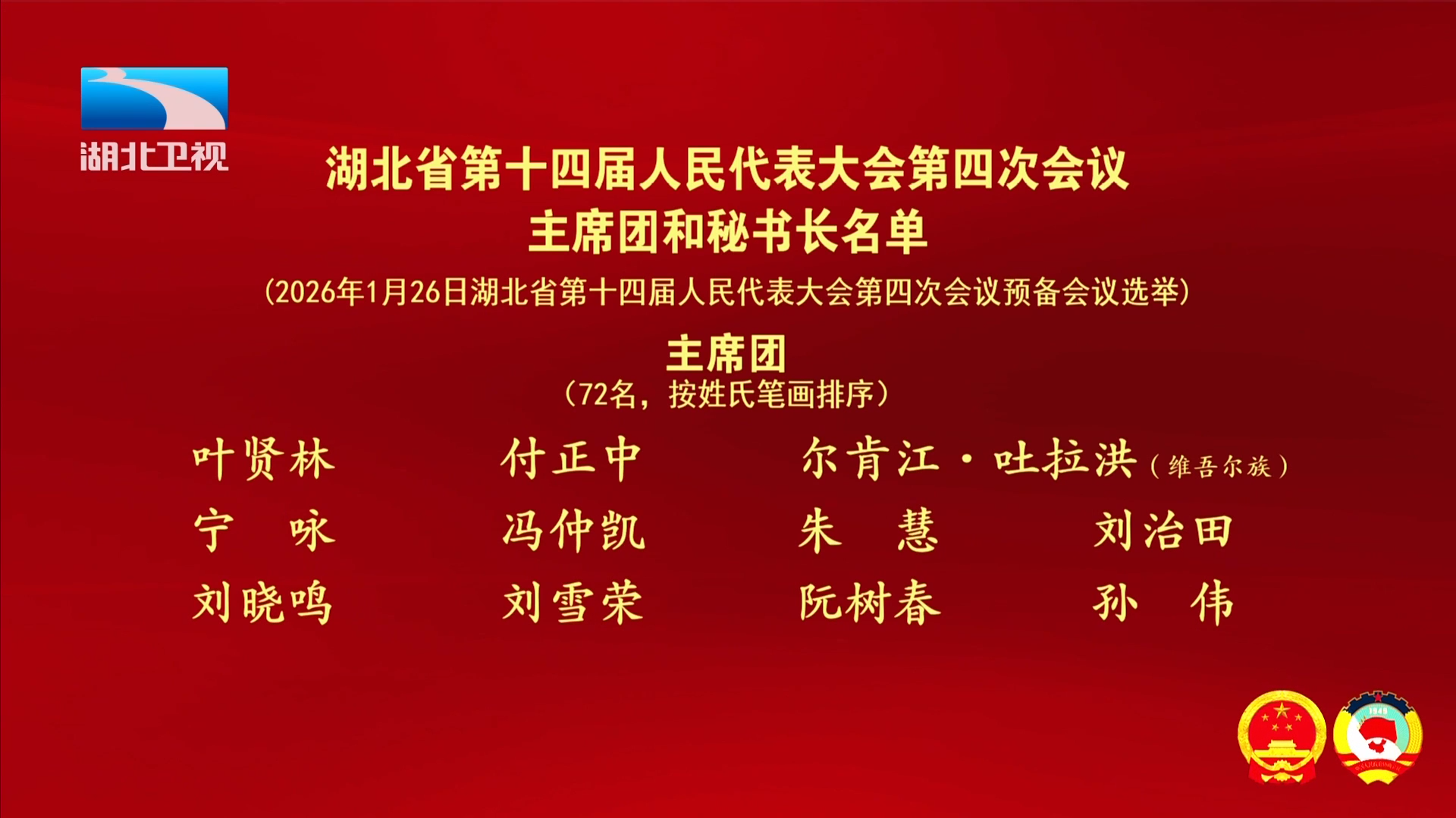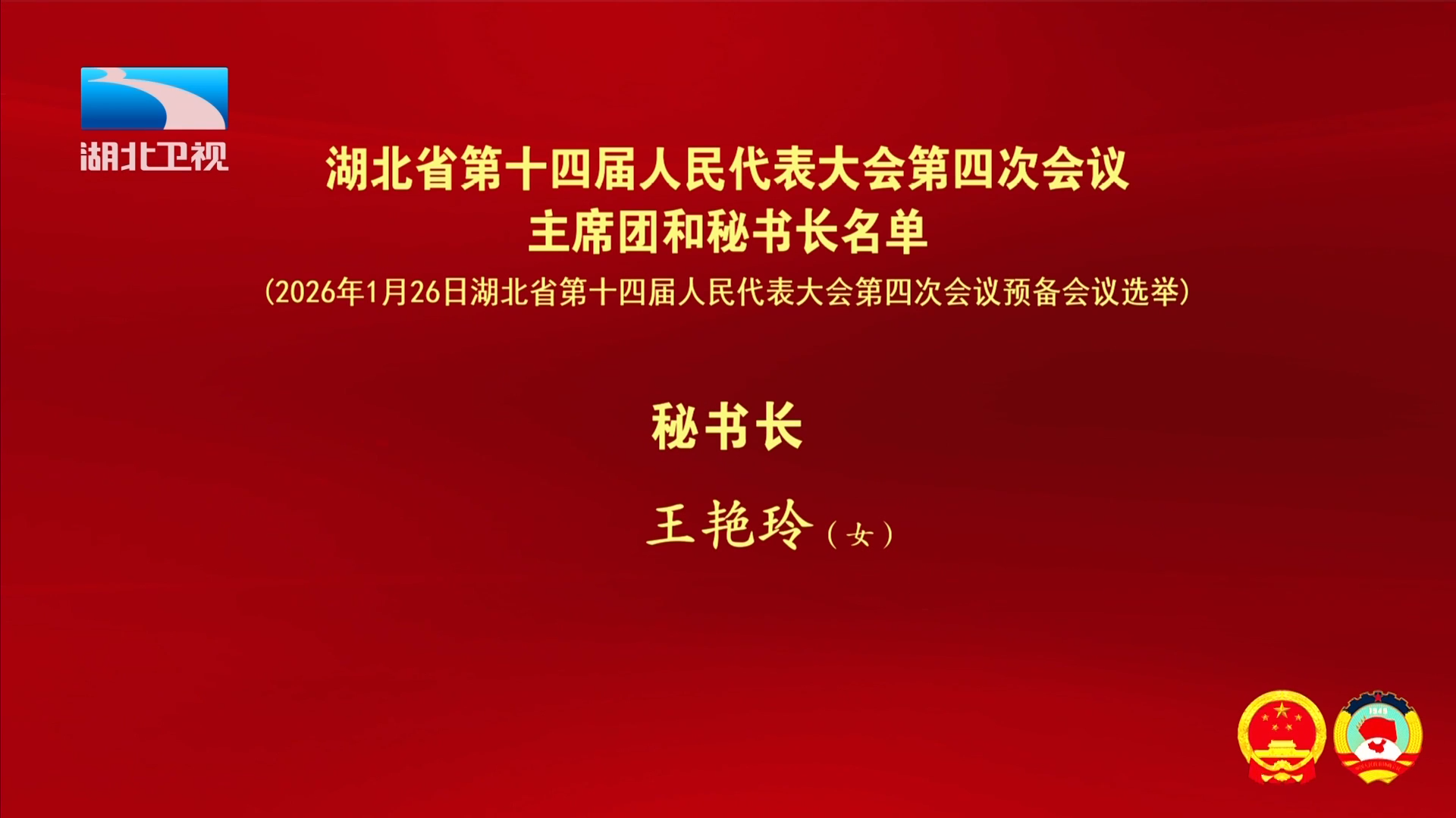 (2026年1月26日湖北省第十四届人民代表大会第四次会议预备会议选举)