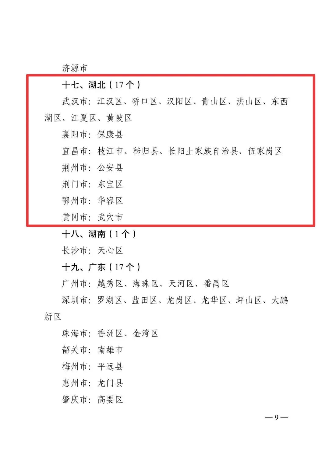 湖北17地入选