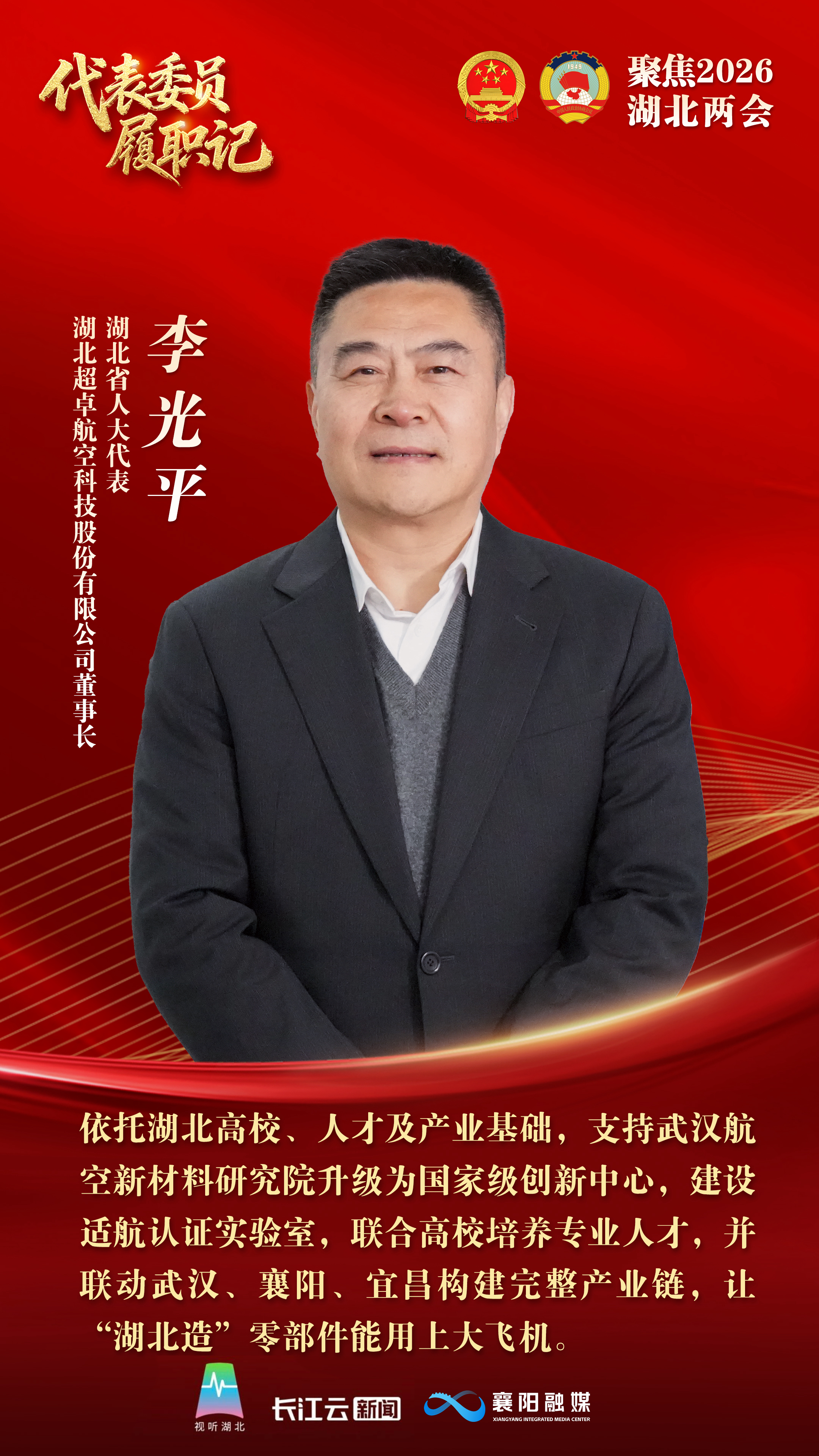 湖北省人大代表、湖北超卓航空科技股份有限公司董事长 李光平