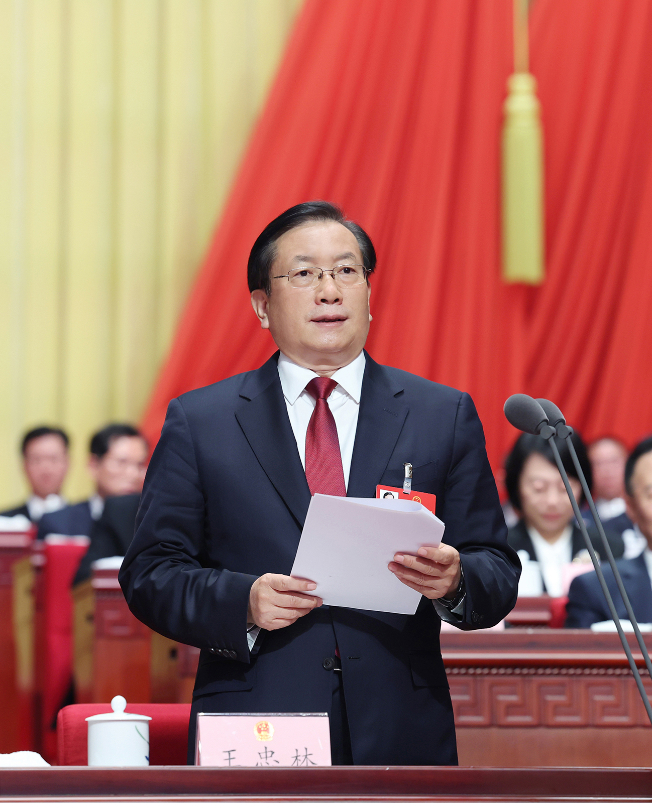 在主席台就座的还有:王蒙徽、王晓东、孙伟、王生铁、宋育英、杨松、张昌尔、徐松南、侯淅珉、张文兵、宁咏、王林虎、琚朝晖、吴海涛、盛阅春、彭勇、阮树春、王玲、梁伟年、周洪宇、万勇、王建鸣、陈平、蔚盛斌、黎东辉、尔肯江·吐拉洪、张柏青、马旭明、张维国、杨玉华、秦顺全、王红玲、王兴於、肖菊华、游劝荣、王守安、闫贵军、熊征宇、胡立山、杨智、朱孔军、尤政、韩进、李元元、黄泰岩、刘泉声、廖志伟、李富民、杨青、张运广、杨自春、赵章平、汪晓陆、李勇等和主席团其他成员。