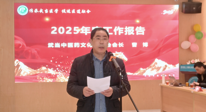 随后,全国中医药文化大会副秘书长、十堰市卫生健康委员会原党组书记、武当中医药文化联合会会长、大赛主席团主席曹博全面总结了联合会成立一年来的工作成果,明确了2026年的重点工作方向,并详细解读赛事活动方案,清晰勾勒出赛事轮廓,让现场嘉宾对这场中医药盛宴充满期待。