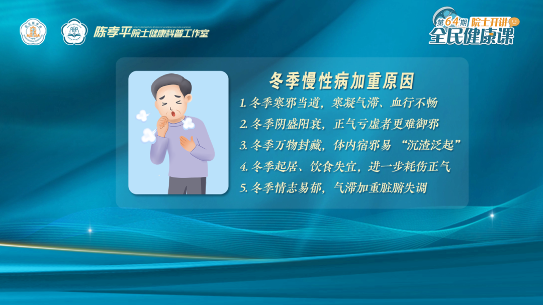 冬季的自然气候特征(寒、阴盛阳衰、万物封藏),与慢性病患者本身的脏腑亏虚、气血失调、痰瘀内阻等病机相互叠加,打破了身体本就脆弱的平衡,原有病症自然就容易反复、加重: