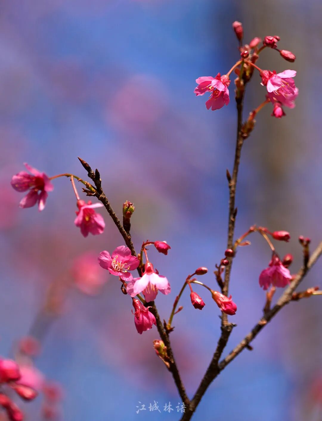 与此同时,在龟山公园樱花栈道旁,1月中旬率先“抢跑”的一株福建山樱,花期已近尾声,另一株福建山樱正在怒放。该园共有40株福建山樱,不少花蕾已膨大。