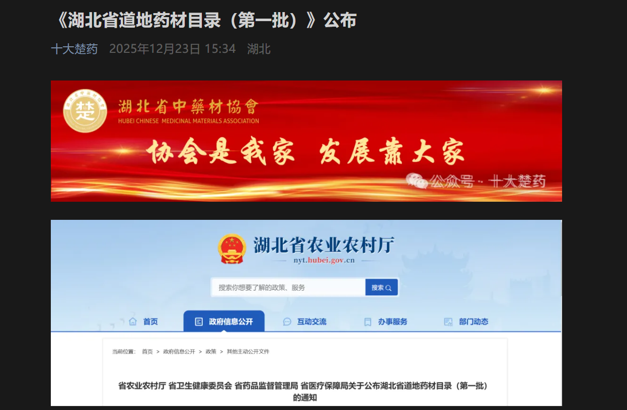 湖北省道地药材目录(第一批)公布