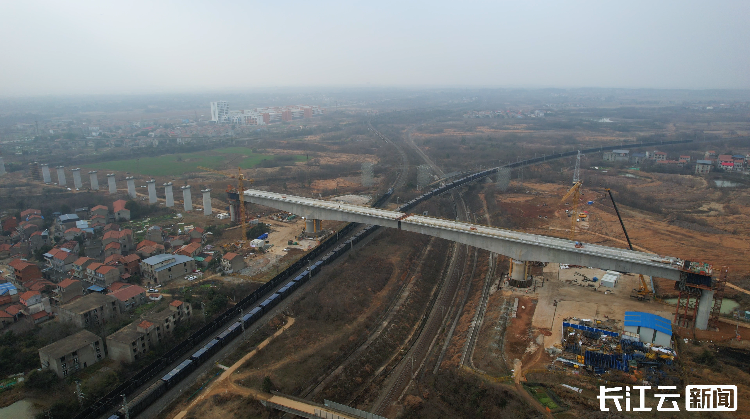 万吨巨梁“空中牵手” 合武高铁塘埠口滠水特大桥连续梁完成转体合龙