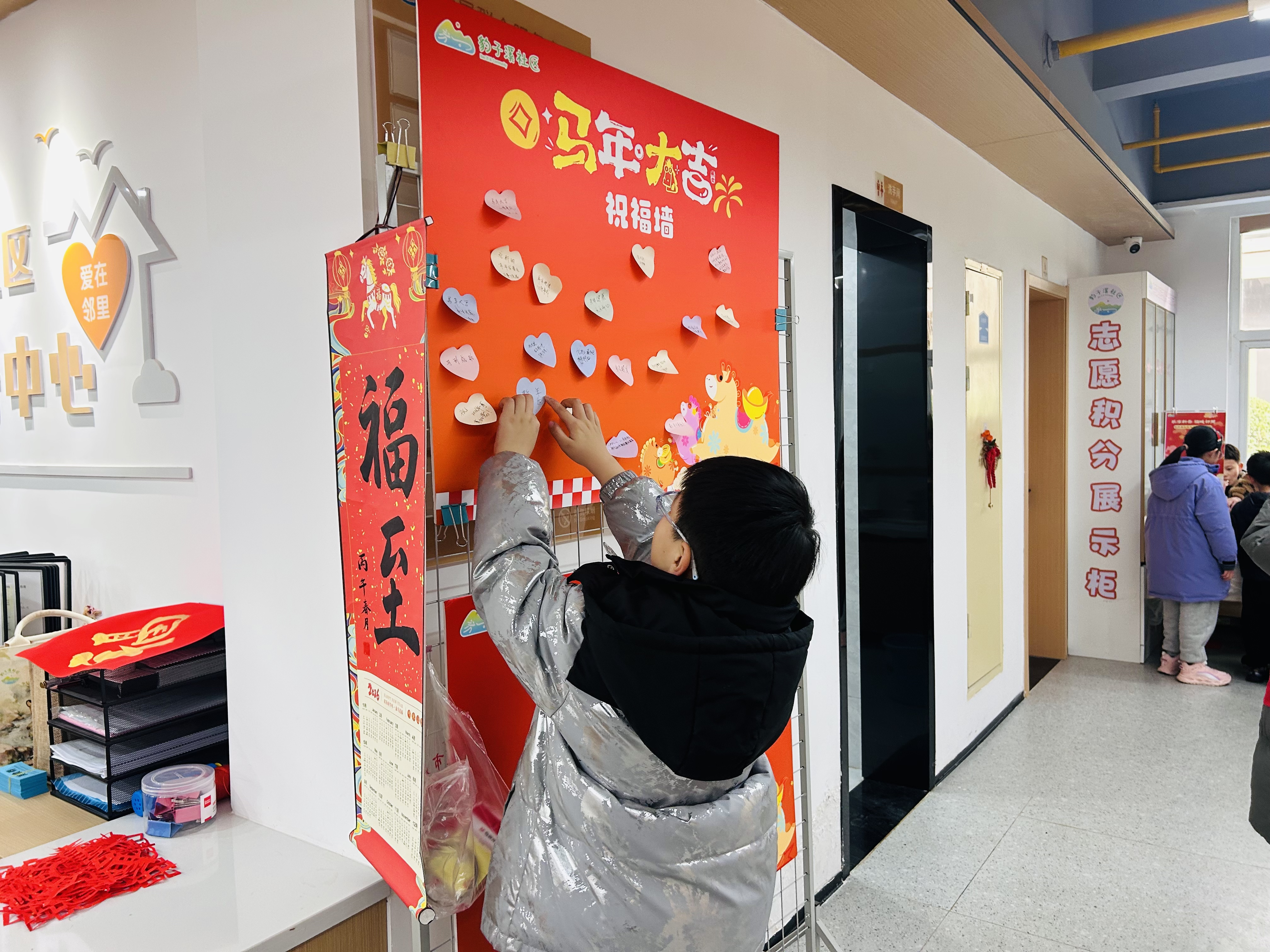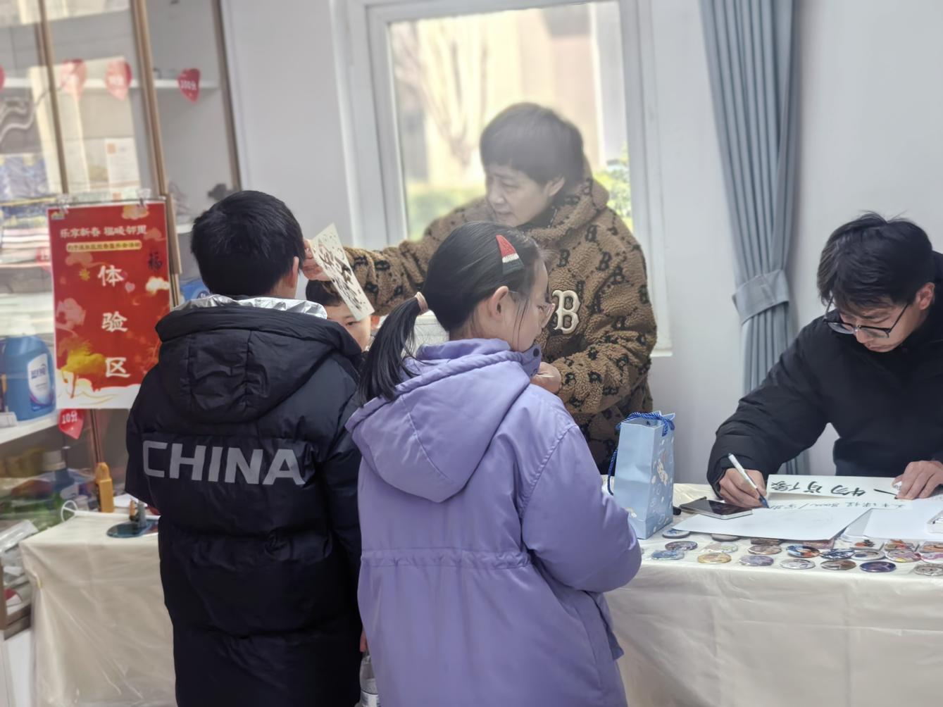 迎春祝福区成为活动的首个“打卡点”。工作人员为居民们送上五彩的便利贴与笔,邀请大家书写心愿与祝福。孩子们踮起脚尖写下“愿爸妈永远年轻”,老人们郑重留下“祝邻里和睦安康”,年轻人则纷纷为社区发展建言献策。贴满祝福和意见的展板,成为冬日里一道暖心的风景。随后,居民们凭体验券和美食券兴致勃勃地前往各区域,开启新春文化体验之旅。