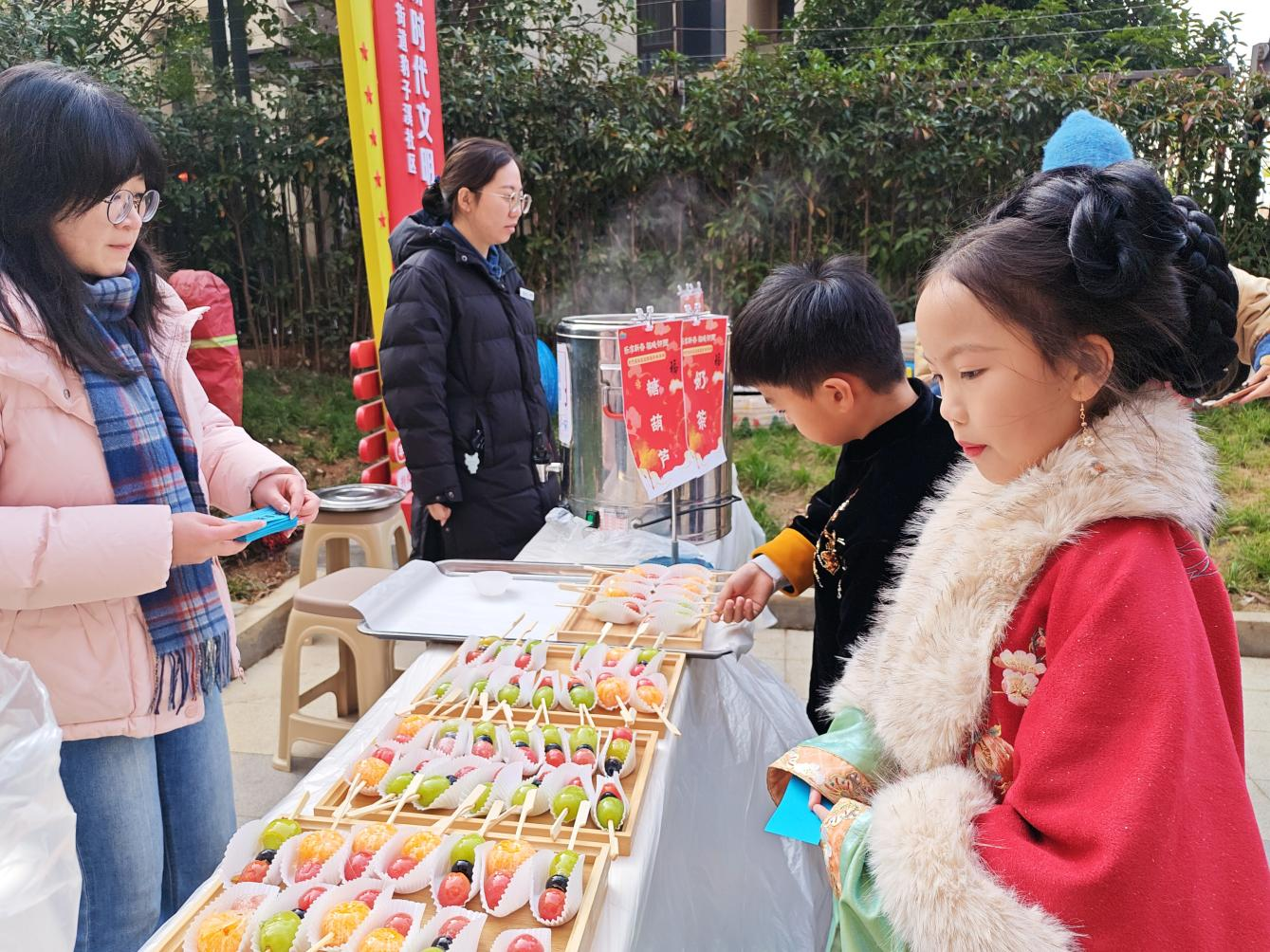 年味美食区香气四溢,成为活动现场的“人气担当”。晶莹剔透的糖葫芦勾起许多人的童年记忆,居民们凭券有序领取,品尝酸甜滋味;烤肠在机器中滋滋作响,金黄诱人,咬一口暖意顿生;现场制作的爆米花与奶茶也备受青睐,免费供应的暖心美味让大人孩子都笑意盈盈。大家边品尝美食边聊天,香气与笑声交织,邻里之情在分享中悄然升温。