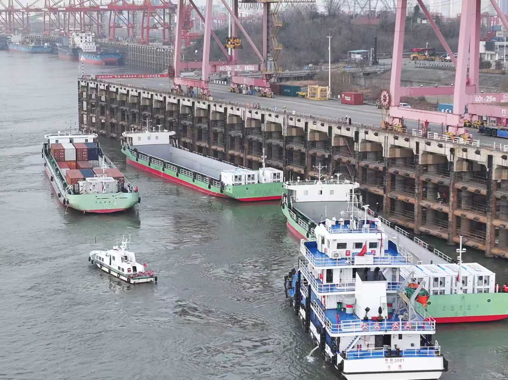 1月28日下午,在武汉阳逻港三期码头,两艘崭新的纯电动集装箱货船在武汉阳逻海事处龙口海巡执法大队的现场维护下,平稳完成靠泊作业。目前,武汉阳逻海事处辖区常态化运营的纯电动货船已增至3艘,长江航运绿色转型再迈坚实一步。