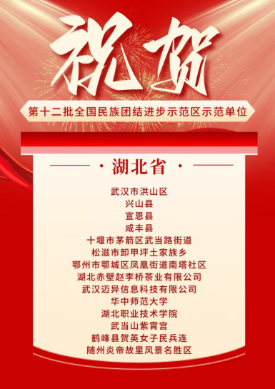 祝贺!十堰茅箭区武当路街道入选第十二批全国民族团结进步示范区示范单位