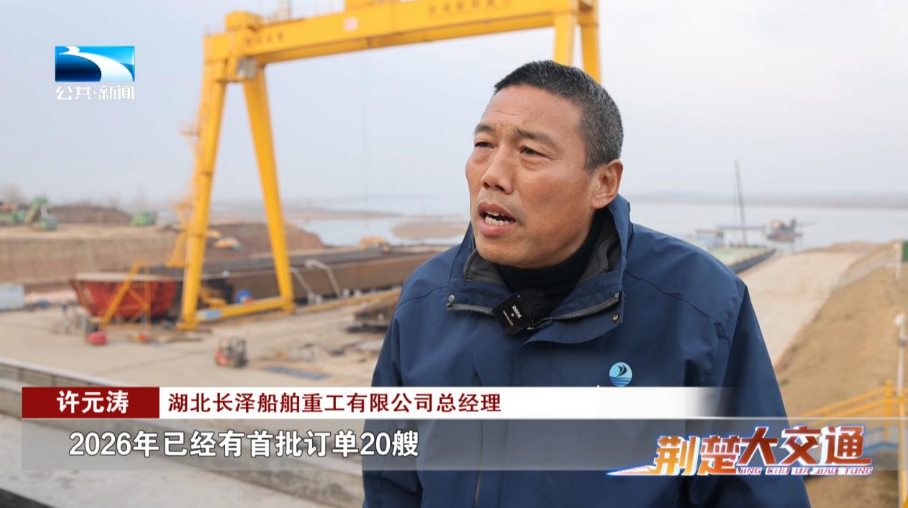 湖北长泽船舶重工有限公司总经理 许元涛:2026年已经有订单20艘,其中的新能源船舶占比50%,基本上在2026年的订单已经处于饱和的状态。同时在谈订单也还有20多艘,其中主要的船型有千吨级、2000吨级和3000吨级。今年的产值预计达到1.2个亿。