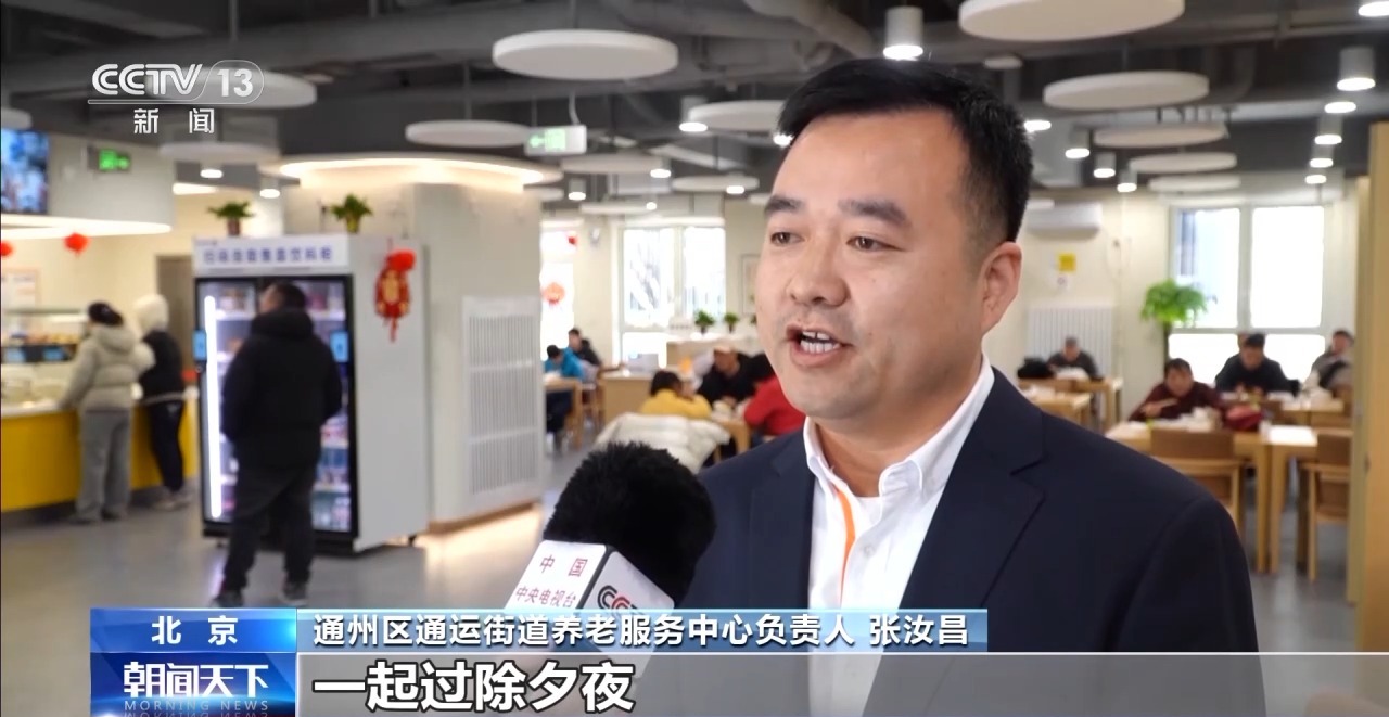 通州区通运街道养老服务中心负责人 张汝昌:明厨亮灶,做到了食品安全可追溯,我们会跟老年人一起过除夕夜,一起包饺子,一起看春晚,希望把节日的氛围带给每位老人。