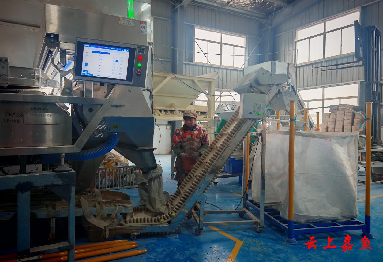 1月28日,咸宁市嘉鱼县官桥镇的湖北省润佳生态农业有限公司生产车间内一派繁忙。全自动芡实加工流水线正高速运转,色选机、智能剥壳设备连轴轰鸣,一颗颗芡实,经筛选、剥壳、清洗、烘干等多道工序,蝶变为洁白饱满的“珍珠”;打包区的工人们身着工装,正麻利地将成品装箱,整个车间尽显热火朝天的生产景象。