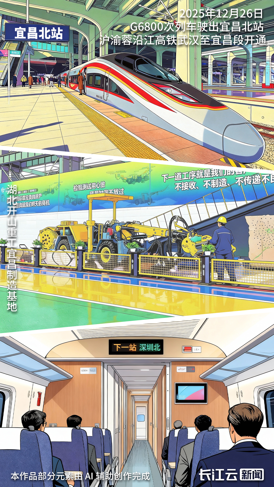 2025年12月26日,G6800次列车驶出宜昌北站,沪渝蓉沿江高铁武宜段正式通车。武汉、襄阳、宜昌“金三角”正式形成高铁大环线,1小时都市圈牵引着全省共同奔跑、通达全国。