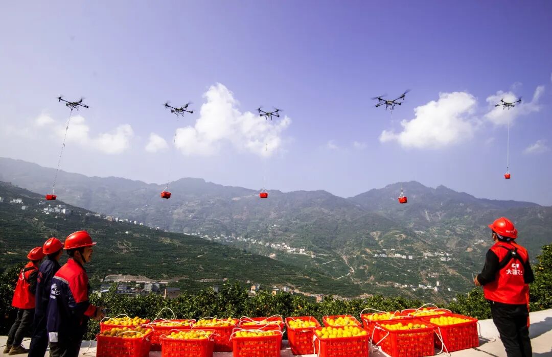 无人机、轨道车构成的“天地联运”网络,让脐橙下山效率提升10倍以上。