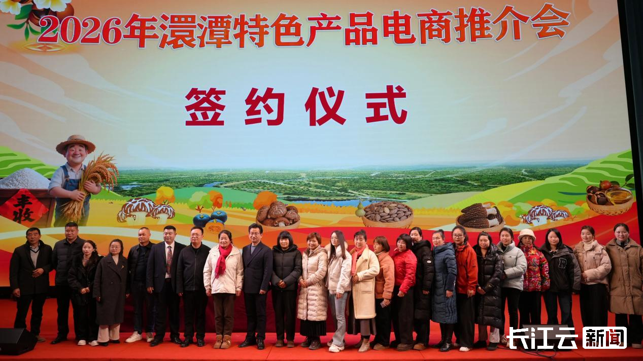 1月31日上午,2026年澴潭特色产品电商推介会在随州市柏瑞斯国际酒店举行,现场氛围热烈。循环播放的特色农产品宣传片,提前展现了白参菌、香稻、土蜂蜜等好物风采,活力四射的开场舞拉开活动序幕,瞬间点燃全场热情。
