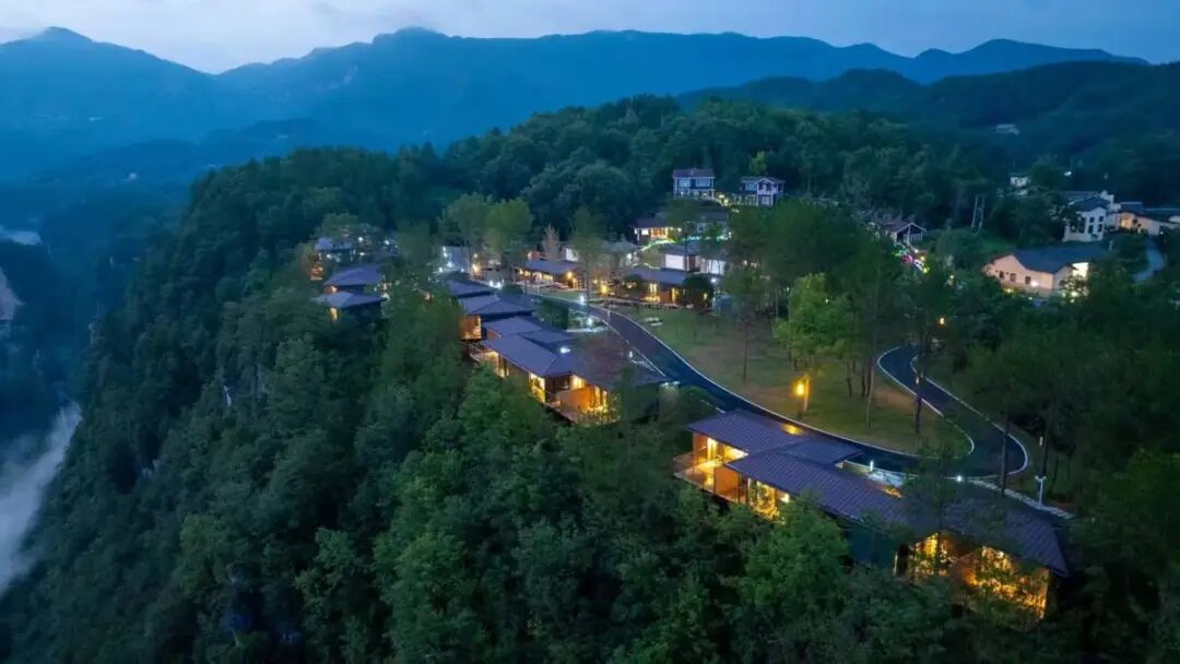 夜幕下,2025年落成的保康县九路寨云崖酒店美轮美奂。全媒体记者 邢忆星 摄