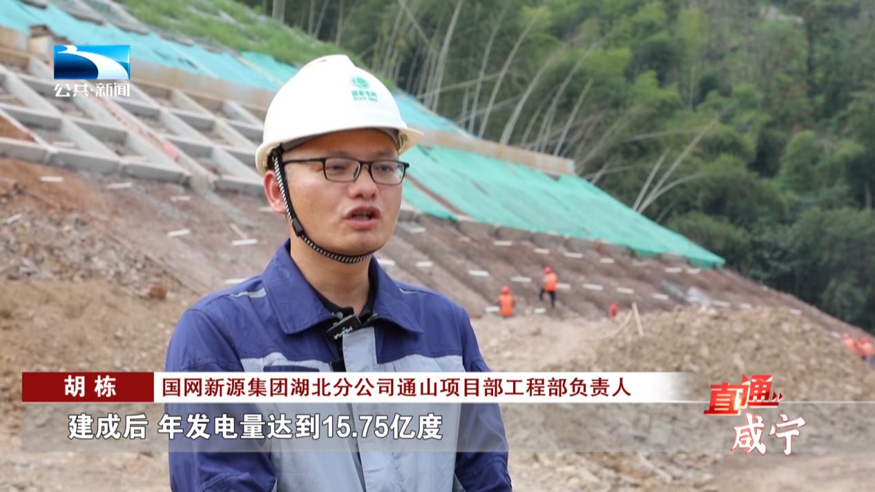 国网新源集团湖北分公司通山项目部工程部负责人 胡栋:建成后,年发电量达到15.75亿度,可以为湖北省电网提供调峰、调频、调相、黑启动、事故备用等作用。