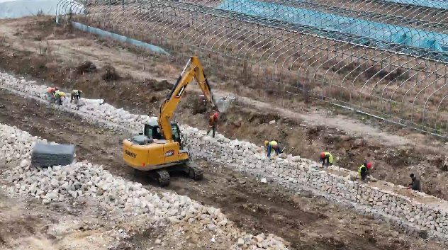 记者在施工现场看到,在项目各个点位,机械轰鸣、工人忙碌,冬修水利的热潮扑面而来。项目施工现场负责人谭林介绍,目前正在修葺的是生态护坡,每个石头之间留有空隙,一是达到灌溉的效果,二是石缝为小型动物、水生生物提供栖息、繁殖场所,促进微生物活动,增强土壤肥力与水体自净能力,形成完整生态链,提高农田生态系统多样性,增强生态系统稳定性与抗干扰能力。
