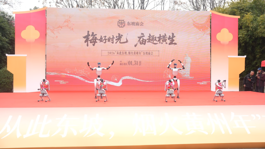 2月1日上午,湖北省黄冈市黄州区红梅傲雪景区入口广场热闹非凡。“从此东坡·烟火黄州年”东坡庙会在红梅傲雪景区盛大开启,开幕式在《共圆中国梦》的开场舞中拉开帷幕,舞者们身姿轻盈,舞步灵动,瞬间点燃了现场的气氛。紧接着,机器人舞团闪亮登场,它们整齐划一的动作,搭配欢快的音乐,带来了一场科技感十足的拜年表演,引得现场观众连连称赞。