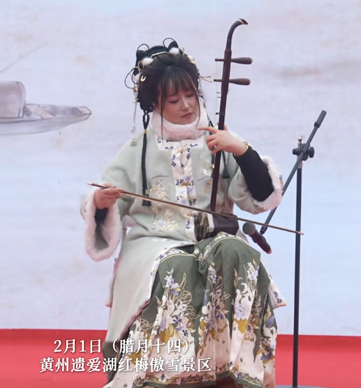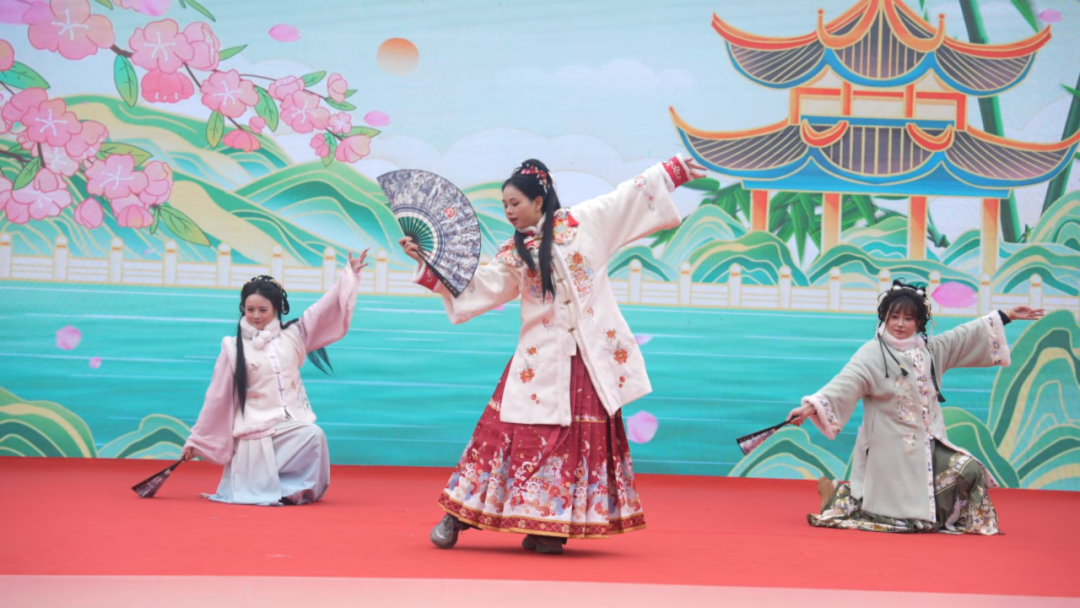 活动现场,黄梅戏、舞蹈、二胡等传统艺术轮番登场。黄梅戏那婉转的唱腔,仿佛将人们带入了古代的诗意世界;舞蹈演员们翩翩起舞,如灵动的仙子;二胡演奏家深情演绎,悠扬的琴声在空中回荡。更有趣的是,现场还有四轮红包问答互动,观众们积极参与,欢声笑语不断,共同热热闹闹地迎接新年。
