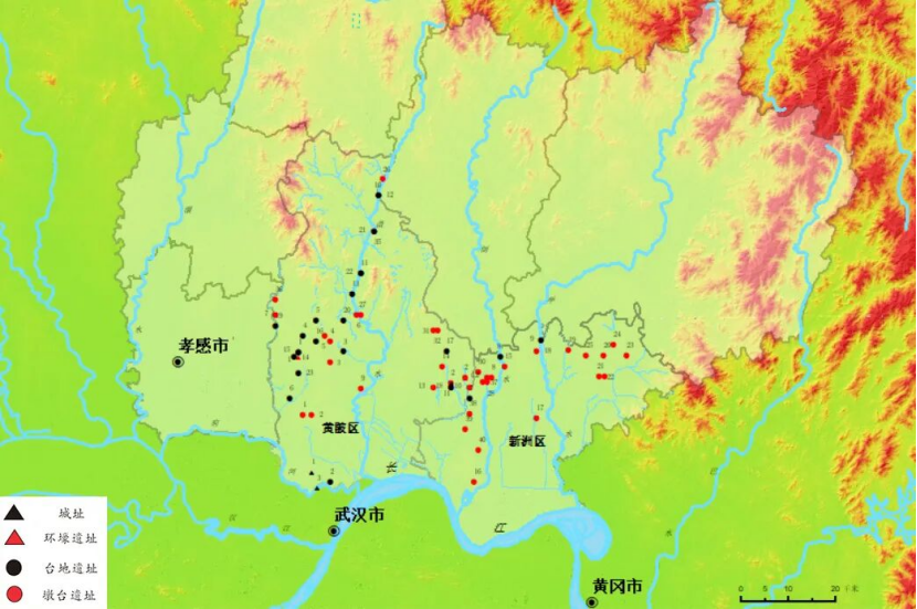 图:武汉市举水、倒水、滠水流域夏商周遗址分布图
