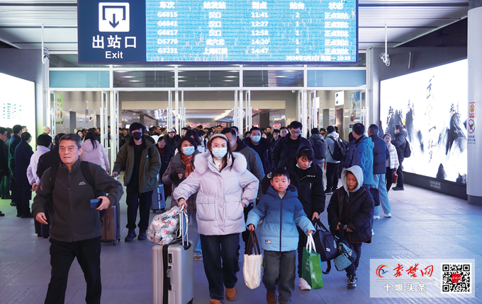 春运首日,高铁十堰东站返乡的旅客明显增多。