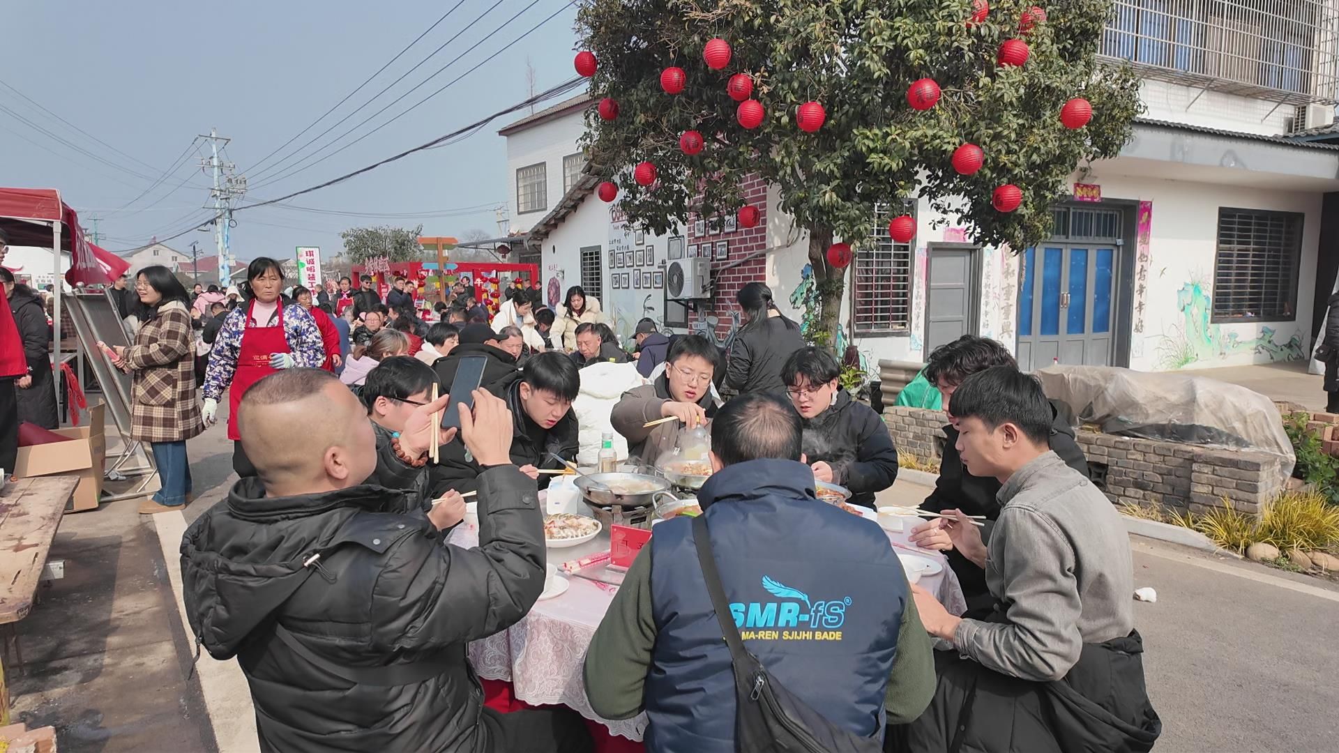 随着日头渐高,活动的重头戏——“杀猪宴”长桌宴在承载乡村记忆的“时光巷”里开席。数十张方桌首尾相连,蜿蜒如龙,村民与游客们比邻而坐,言笑晏晏。