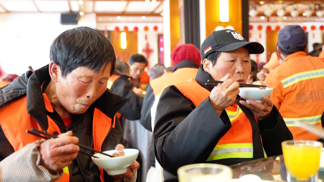 “这次团圆饭吃在嘴里,暖在心里,感谢爱心人士对我们的关心。”环卫工人吴金堂说。