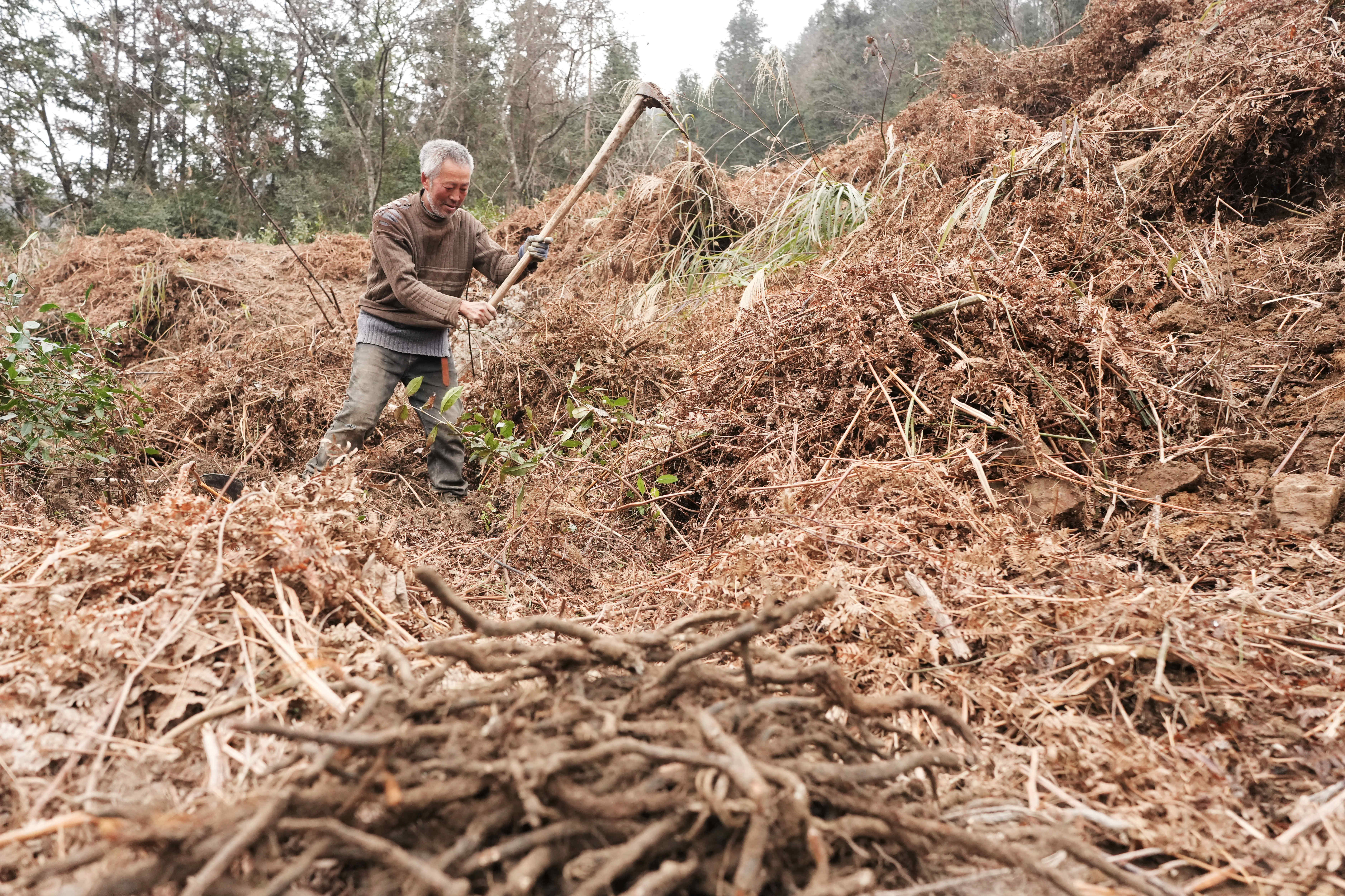 好的蕨根大多生长在高山荒野地带,人迹罕至。老向的心中似乎装着一本当地蕨根分布的活地图,暗中排好序,几年一轮挖,就像自己栽种的一般,年年都有好去处,从不放空。“位置选准了,一锄就能挖一两斤蕨根,两个小时就可以挖一挑。”老向说这话的时候,让人听起来像吹牛,但又自信得不容置疑。