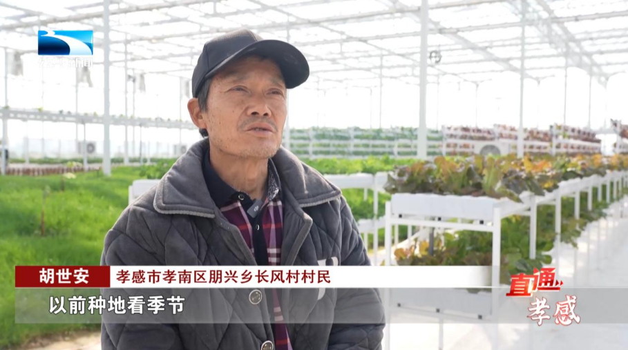 孝感市孝南区朋兴乡长风村村民 胡世安:以前种地看季节,现在在大棚里一年到头有活干,在这里我们务工,每个月都有固定的收入,日子过得很踏实。