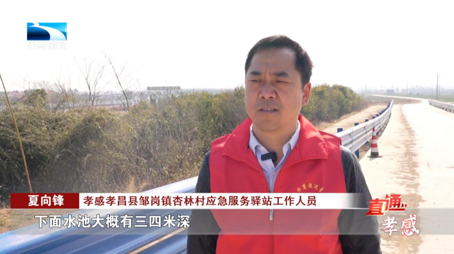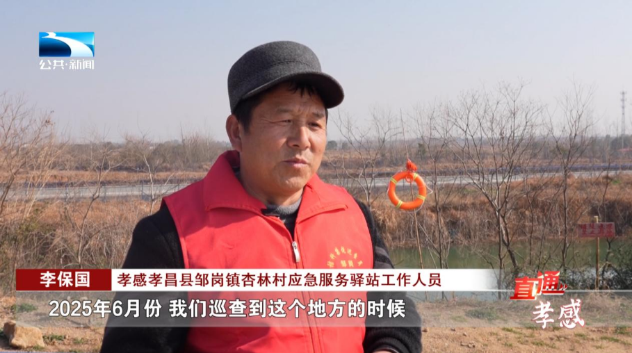 孝感孝昌县邹岗镇杏林村应急服务驿站工作人员 李保国:2025年6月份,我们巡查到这个地方的时候,发现一个压路机刚好掉在水里,当时我跑过来的时候,那个司机就在水里面挣扎,我赶紧取下岸边的“防溺水四件套”,救生圈丢给他,他拉住,就把他拉上来了。