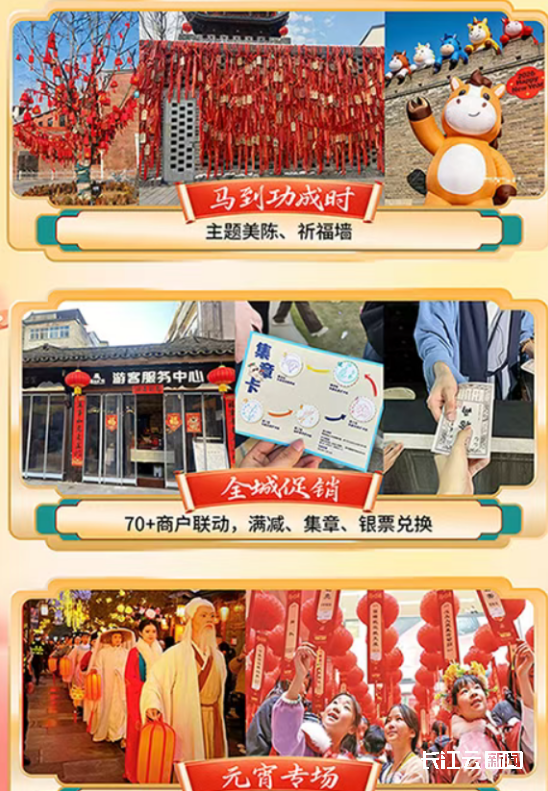 2月15日—2月22日(腊月二十八至初六),草甸子街历史文化街区年味十足!主题美陈、祈福墙打卡出片,70+商户联动促销,满减、集章、银票兑换福利不停。3月3日元宵节还能参与猜灯谜、八仙巡游,在青石板路上感受古今交融的新春氛围。