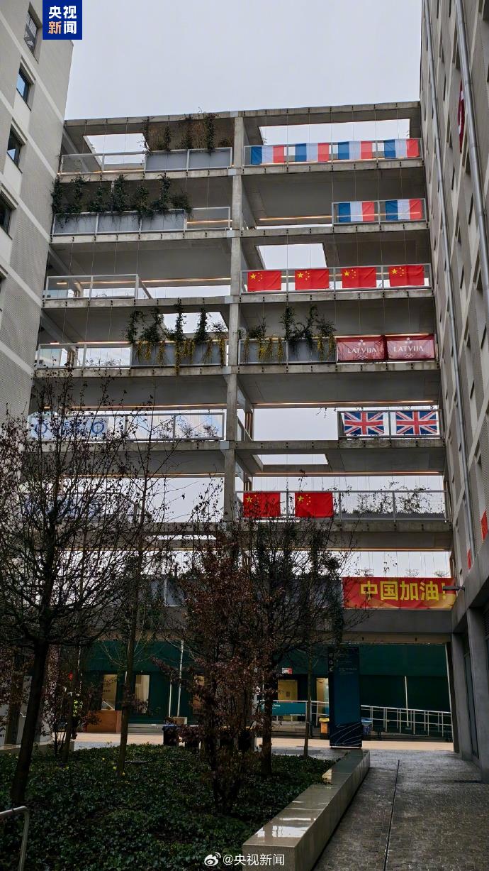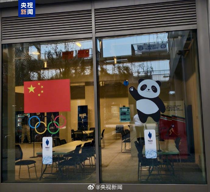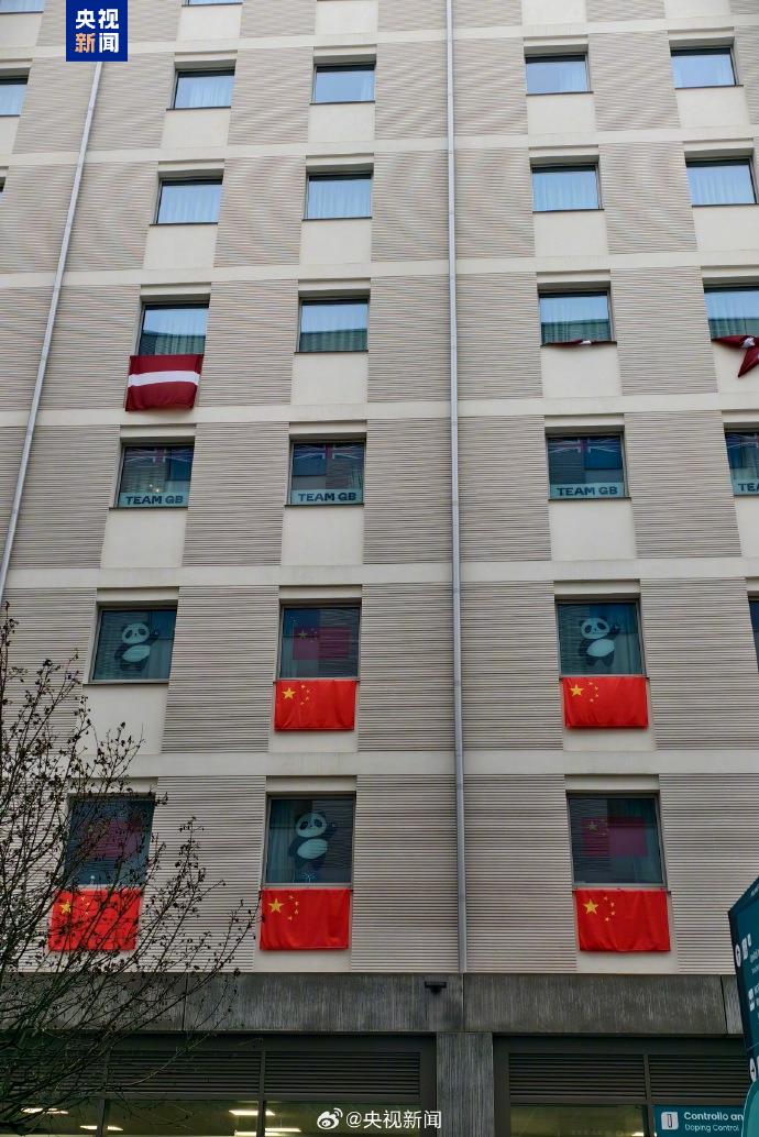 2026米兰冬奥会开幕在即。在意大利米兰冬奥村中国体育代表团驻地,鲜艳的五星红旗整齐悬挂,“中国加油”横幅、大熊猫等元素亮相。