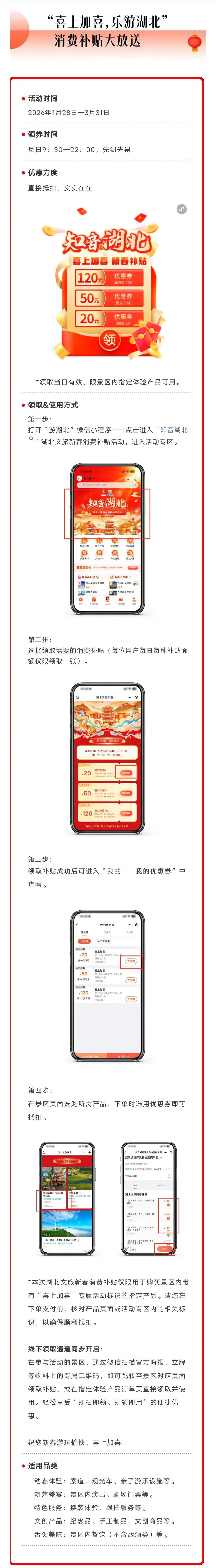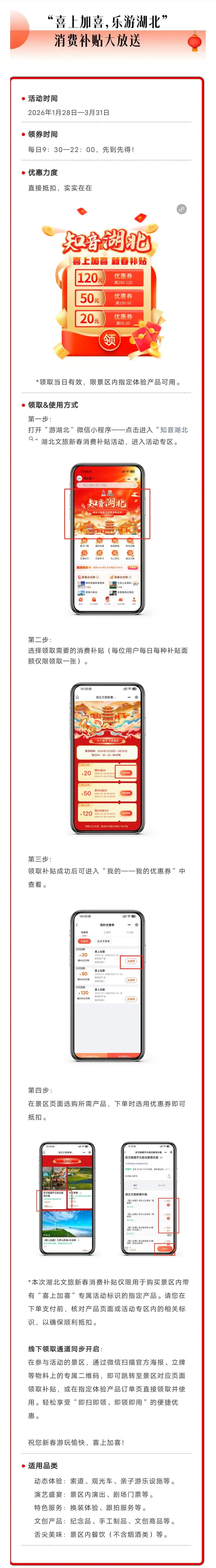 湖北第二轮新春文旅消费补贴,今日10时开领