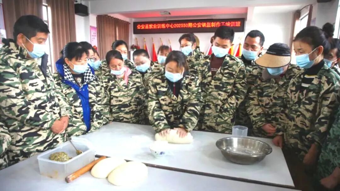 程金兰的创业故事,正是公安县以技能培训赋能群众就业创业的缩影。近年来,公安县立足“公安锅盔师”这一湖北省第五批十大劳务品牌优势,创新采取“技能培训+就业创业扶持”模式,定期开展免费锅盔技能培训,让更多群众实现增收致富。