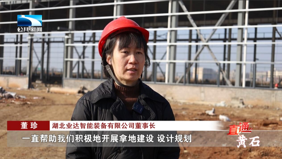 湖北业达智能装备有限公司董事长 董珍:黄石港工业园提供了保姆式的服务,一直帮助我们积极地开展拿地建设 、设计规划,园区给我们协调了天然气、道路管网 、 宽带、还有我们的供电,对我们的需求是有求必应。