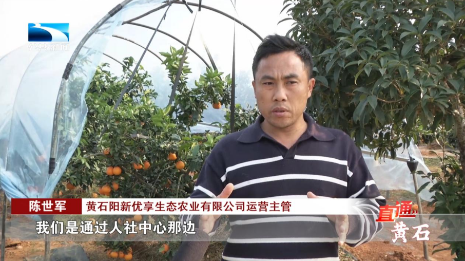 阳新优享生态农业有限公司运营主管 陈世军:我们是通过人社中心那边,免费学习这个机会,我们带了5到6个长期在这里直播的一些我们的学员一起来助农,来推广我们的满山的红美人果冻橙。