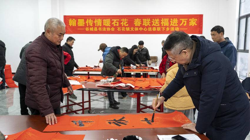 笔尖流淌中国年!襄阳谷城书法家协会志愿者义写春联暖石花
