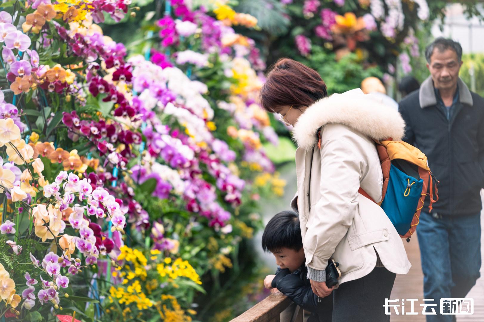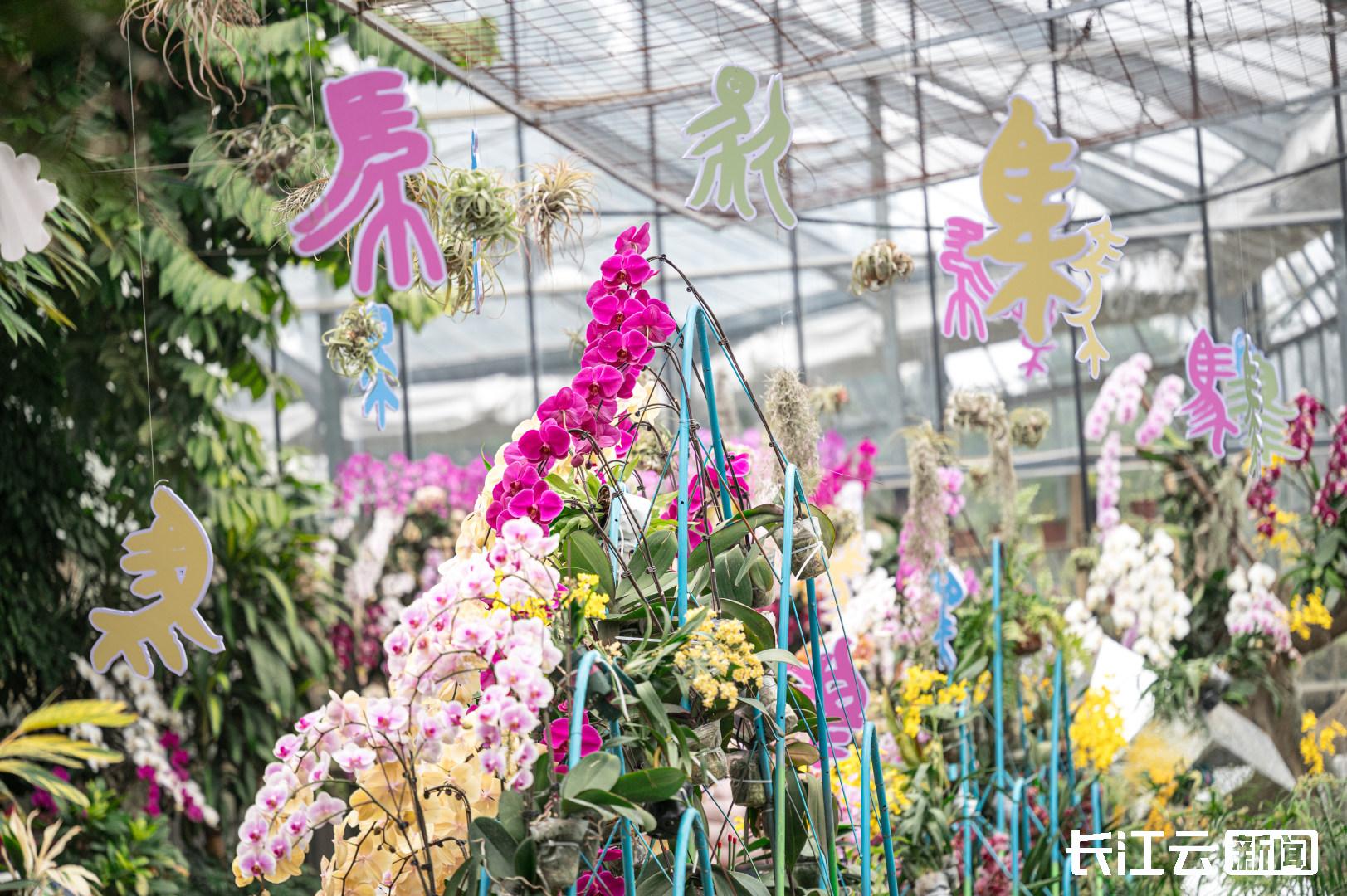 武汉植物园景观温室内,“23℃花屋 兰驻时光”新春热带兰花展正在热烈开展。上万株蝴蝶兰、石斛兰、卡特兰、文心兰等热带兰花,构建出十大沉浸式景观:5米高的兰花瀑布倾泻而下,悬吊竹筒营造出“兰境仙踪”,鲜花缀满拱门形成浪漫花廊,凤梨兰花山充满生机与活力……一步一景,引人踏入兰花奇境。展览汇聚了形似孙悟空的魔鬼文心兰、“兰花大熊猫”杏黄兜兰、带巧克力香气的梦香文心兰等100多种珍奇兰花。春节假期,景观温室还将上新大彗星风兰、文山兜兰、硬叶兜兰等50种兰科植物,以及38种凤梨科植物和多种热带植物,为假日增添新看点。新春将至,万株兰花景致中巧妙融入马年元素。不同字体的“马”字悬挂装饰,与盛放的兰花共同妆点迎宾长廊;“花花马”造型打卡牌点缀其间,为游客提供趣味留影点。兰花与马元素相映成趣,寓意“马上花开、前程似锦”。