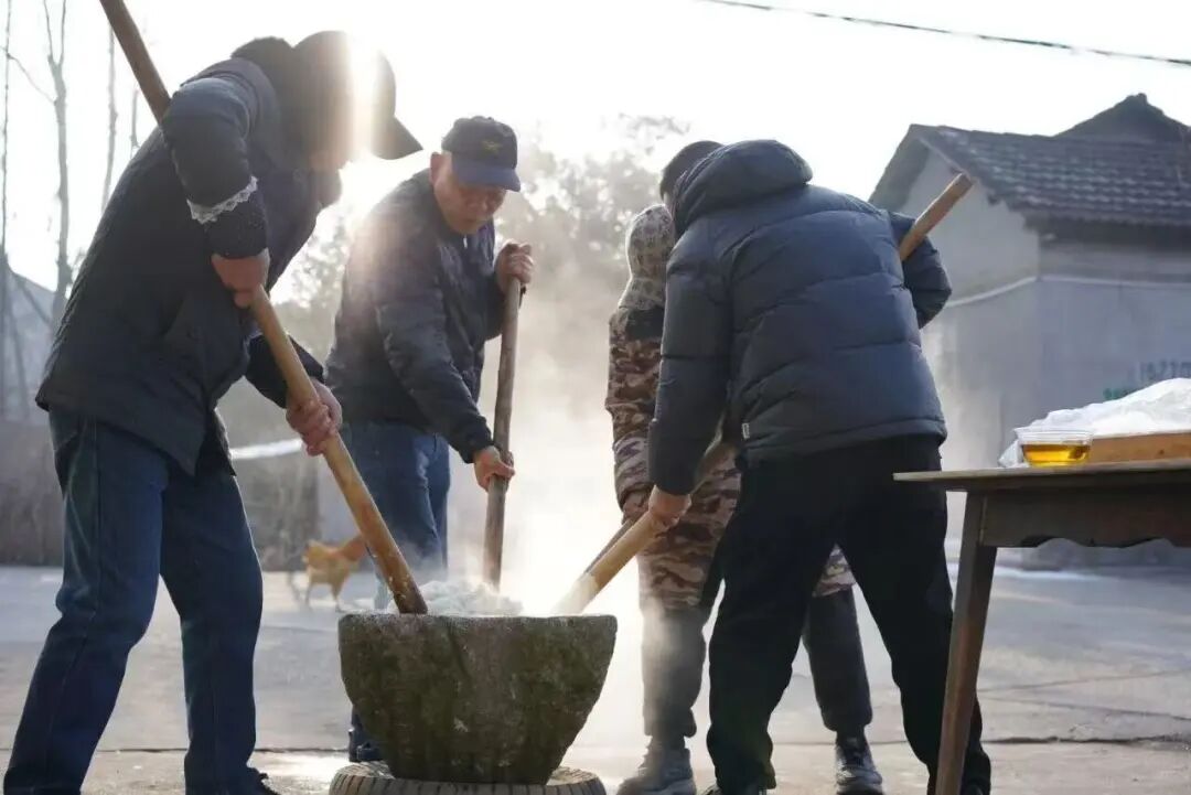 你还可以到广场中央,亲身参与打糍粑,感受非遗与美食碰撞的趣味美好。