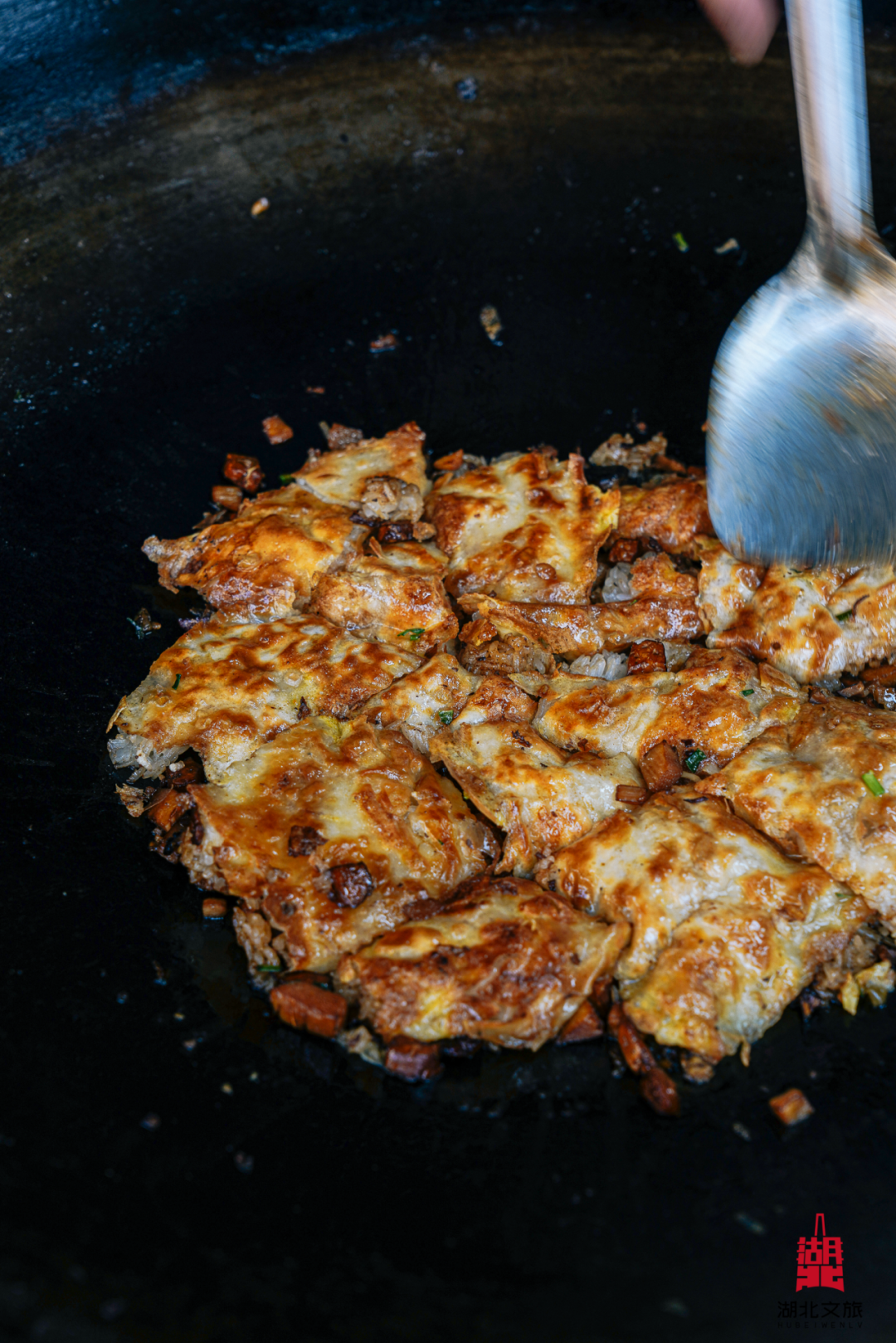 老通城的豆皮铁锅前总围着食客,金黄蛋皮包裹着糯米、肉丁与香菇,外脆内糯,尝一口幸福爆棚。