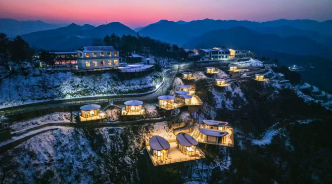 彼时的天池山,早已是南漳文旅的一块“金字招牌”,这里以高山“天池”奇观和富氧森林闻名,近年来已获评全国森林康养基地试点、湖北省夜间消费集聚区等多项称号。2016年,小方跟随着父辈的脚步,从传统建筑行业抽身,投入乡野,将城市的建设理念移植于山野间,他们在荒山野岭间修通了路,引来了水,硬生生在乱石荆棘中建起了这座3A景区,每逢旺季,这里便一房难求,年接待游客量超过30万人次。
