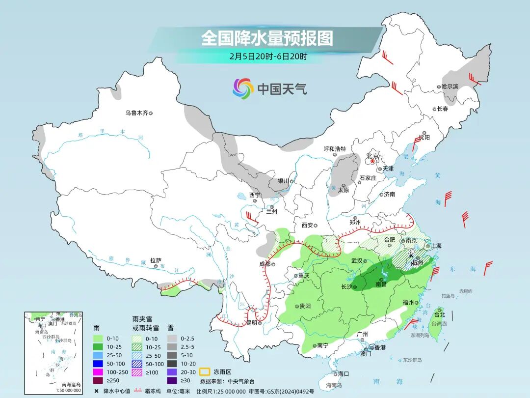 除了降温,这次还要重点关注淮河以南的大范围降水,江苏、安徽、上海、浙江中北部等地有雨转雨夹雪或雪,部分地区有大到暴雪。